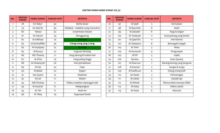| Judul Surah: Nama Nama Surat Juz 30 Beserta Artinya Kumpulan Contoh Surat |