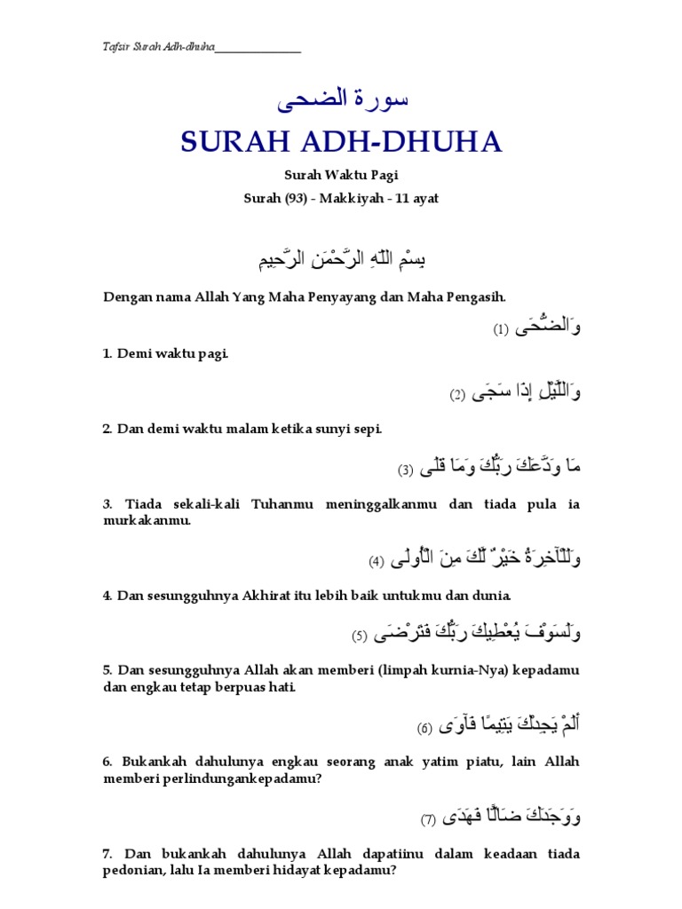 Belajar makna surat ad dhuha Surah Adh-Dhuha - . Surah Ad-Dhuha merupakan surat yang ke-93 dari 114 surat dalam Al-Quran dan terdiri dari 11 ayat. Di usia dakwahnya tahun. Cek jugamakna dan makna surat ad dhuha Dengan nama Allah Yang Maha Pemurah lagi Maha Mengasihani.